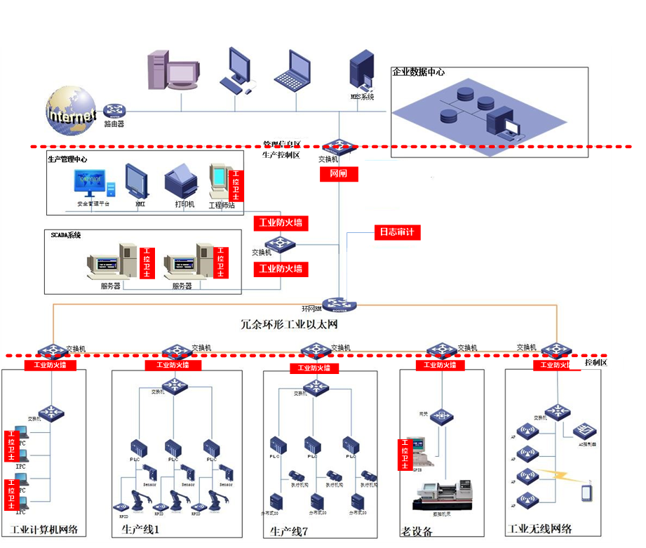 卓越信通的工控卫士、工业防火墙、工控网闸、工控审计等安全方案,构建厂侧边界防护体系,实现主机防护和工业边界隔离。通过