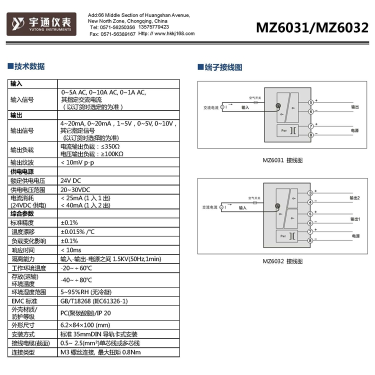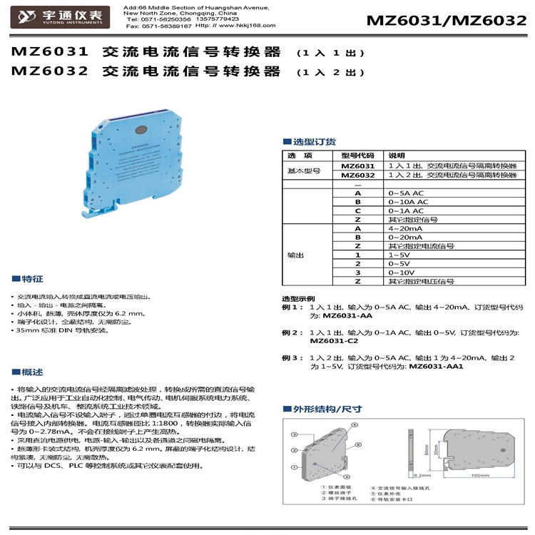 宇通MZ 6031-AA1交流电流转换器 电量变送器