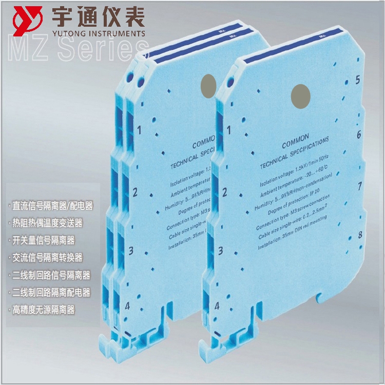 MZ 系列隔离器适合于工业自动化及过程控制中非防爆场合应用,是用于连接工业现场仪表与控制室之间的电气接口设备。它通过可靠隔离技术,有效解决工业自动化控制系统现场干扰问题, 保证系统的稳定性和可靠运行。MZ 系列隔离器采用全新的模块化设计,超薄形的机壳,体积小,功耗低,转换精度高,抗干扰能力强。可以与各种单元组合仪表及 DCS、PLC 等系统配套使用,在石油、化工、电力 、钢铁、机械、冶金、轻工等行业中有着广泛应用。
