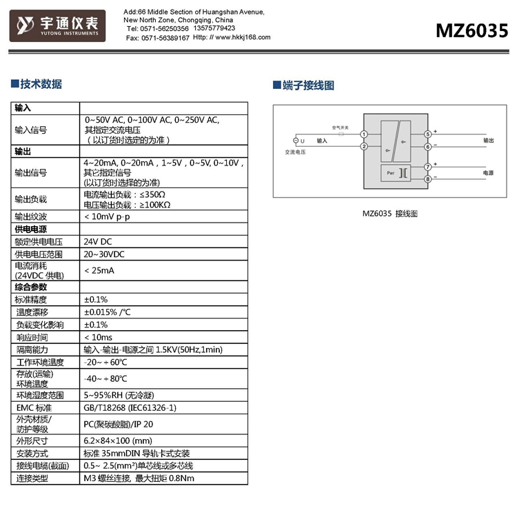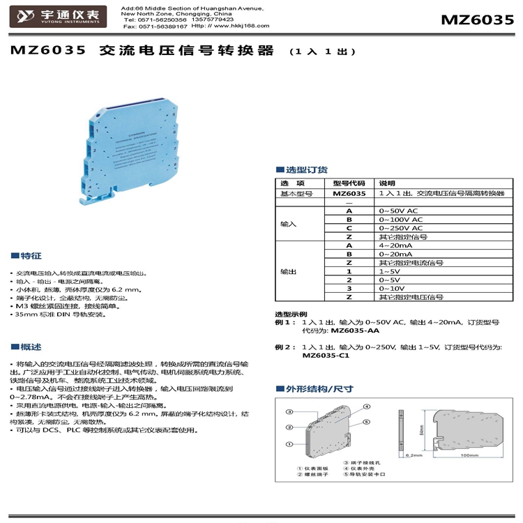 宇通MZ 6035-AA1交流电流转换器 电量变送器