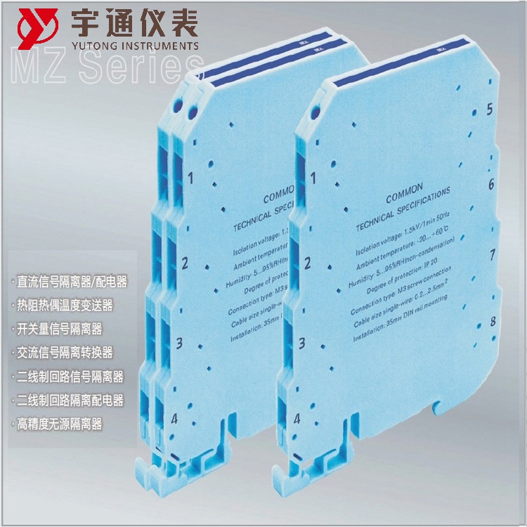 MZ 系列隔离器适合于工业自动化及过程控制中非防爆场合应用,是用于连接工业现场仪表与控制室之间的电气接口设备。它通过可靠隔离技术,有效解决工业自动化控制系统现场干扰问题, 保证系统的稳定性和可靠运行。MZ 系列隔离器采用全新的模块化设计,超薄形的机壳,体积小,功耗低,转换精度高,抗干扰能力强。可以与各种单元组合仪表及 DCS、PLC 等系统配套使用,在石油、化工、电力 、钢铁、机械、冶金、轻工等行业中有着广泛应用。