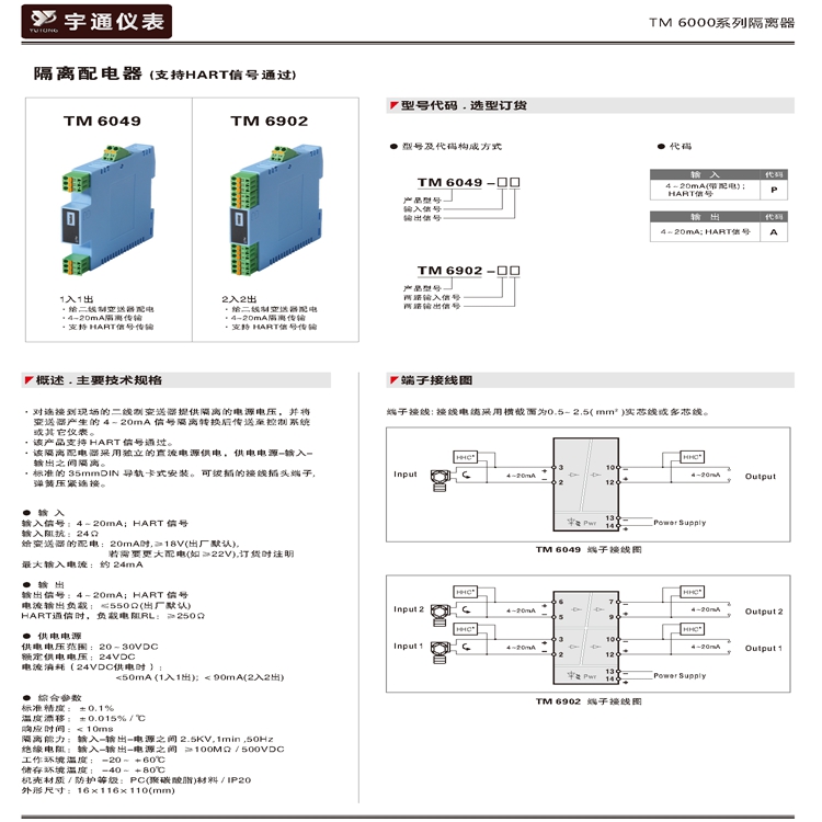 宇通TM 6902-PA信号隔离配电器2入2出HART协议