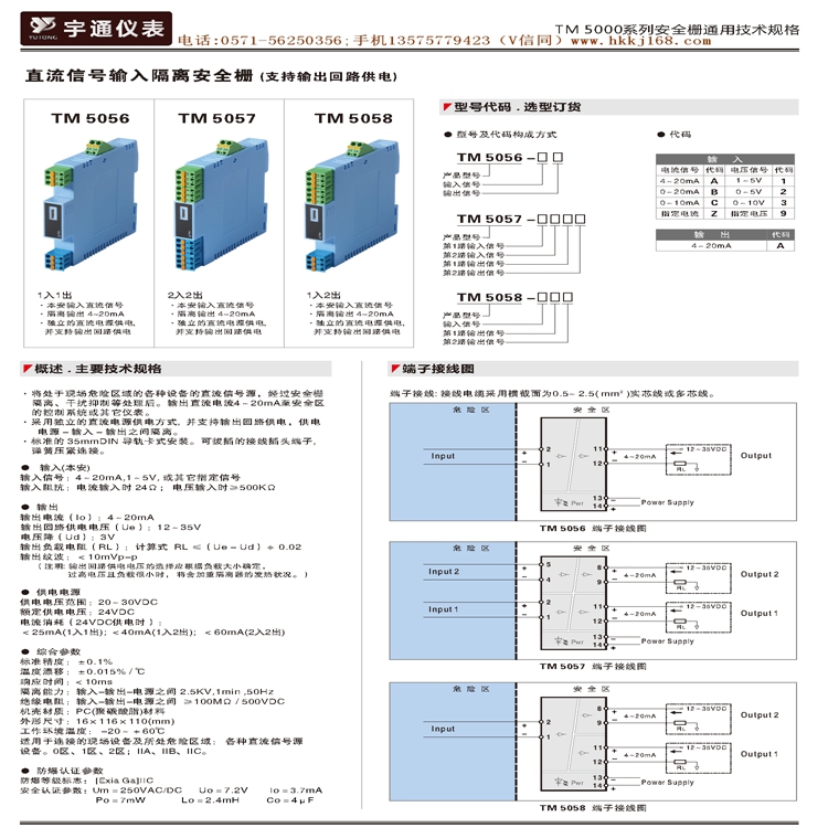 宇通TM 5056-AA信号隔离安全栅电流1入1出