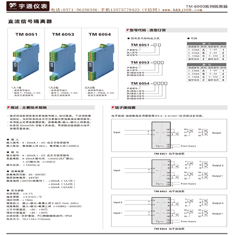 宇通TM 6053-AAA信号隔离器1入2出4~20mA电流