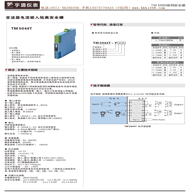 TM 5000 系列隔离安全栅是依据国家标准GB3836.1-2010《爆炸性环境 第1部分:设备 通用要求》、GB3836.4-2010《爆炸性环境 第4部分: 由本质安全型“ i ”保护的设备》设计的产品。是连接工业现场仪表与控制室仪表之间的本质安全关联设备。TM 5000系列产品具备多种类型规格可供选择,满足自控系统中各种信号的隔离、配电、转换、分配、报警设定等功能要求。广泛应用于工业过程控制中需要本质安全防爆的场合。。